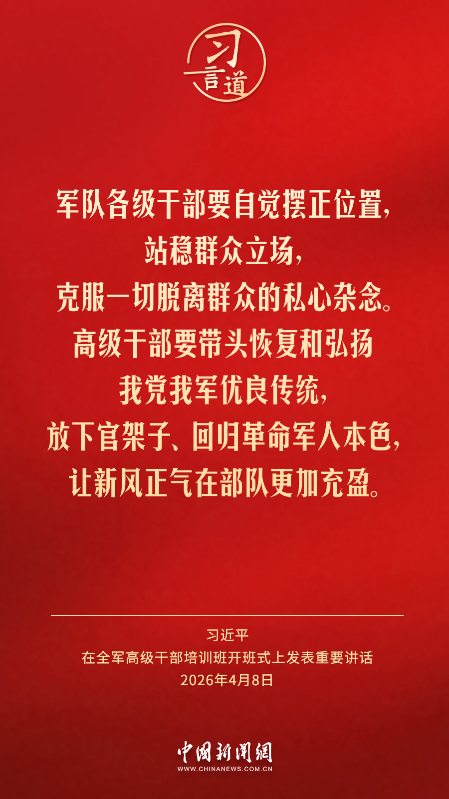 全军高级干部培训班8日在国防大学开班。中共中央总书记、国家主席、中央军委主席习近平出席开班式并发表重要讲话。他强调——