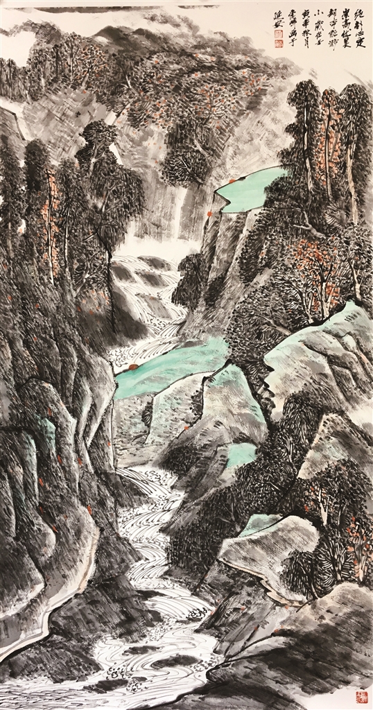 《延安清凉山》(138×69cm)