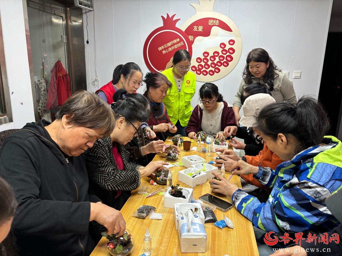 活动中,社区工作人员和居民们先后分享了邻里互助的暖心故事。随后,在微景观DIY环节,大家认真学习制作方法,动手创作苔藓生态瓶,现场氛围融洽、欢声笑语不断。
