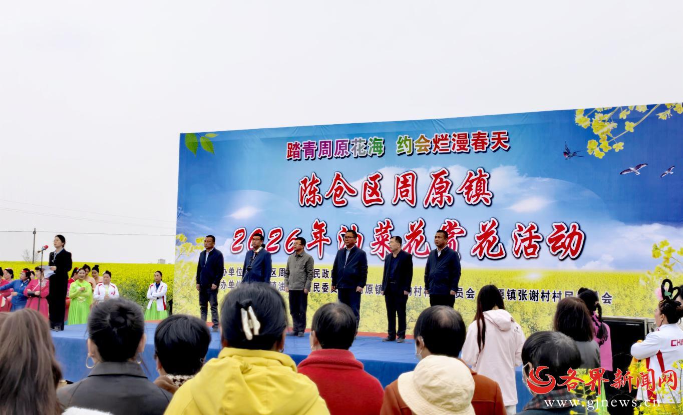 4月8日,以“踏青周原花海 约会烂漫春天”为主题的陈仓区周原镇2026年油菜花赏花活动启动仪式在油坊村油菜花海举行。300余名镇村干部群众与各地游客齐聚金色花海,共同拉开这场春日文旅盛宴的序幕。