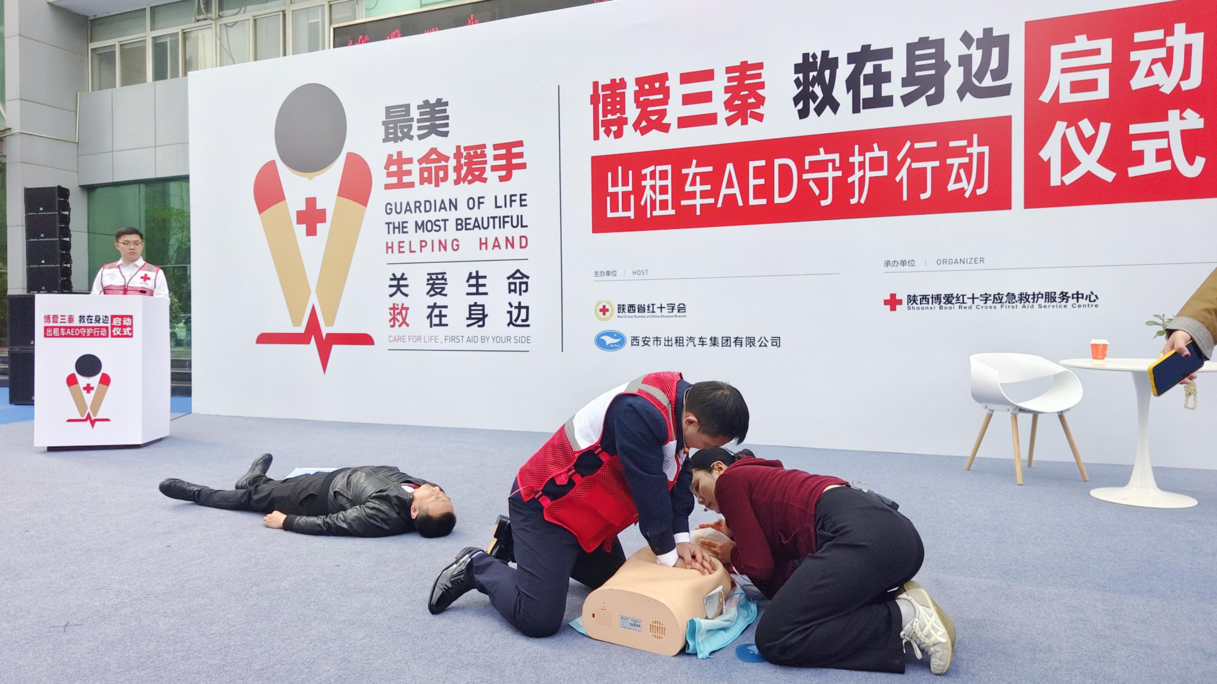 启动仪式上,陕西省红十字会与西安市出租汽车集团签署合作协议;现场为出租车驾驶员代表颁发红十字救护员证书;开展实景化应急救护演练,全方位展示科学规范的应急救护流程。
