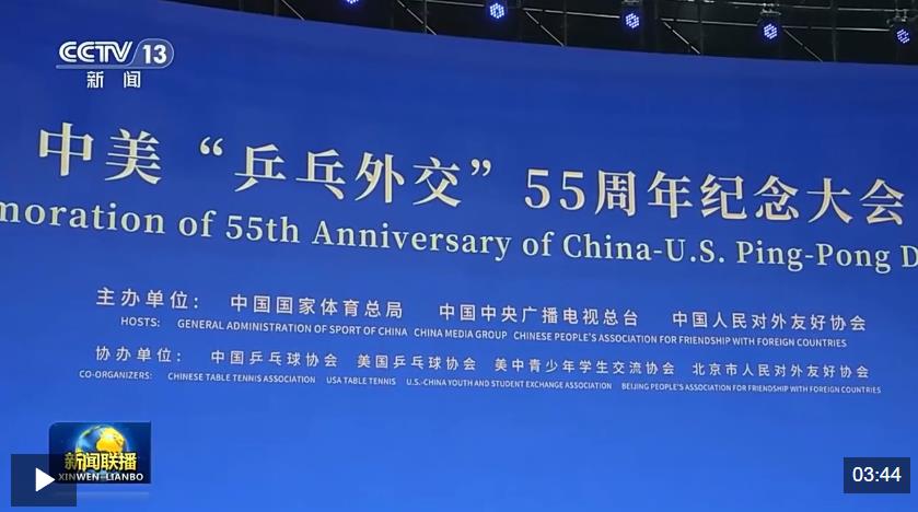 中国人民对外友好协会副会长 沈昕:总书记在贺信中强调了“乒乓外交”的现实和历史意义,特别鼓励两国的青年一代他们要相知相亲、携手同行,这对中美两国的民间交往是一个巨大的推动,也注入了温暖的能量。