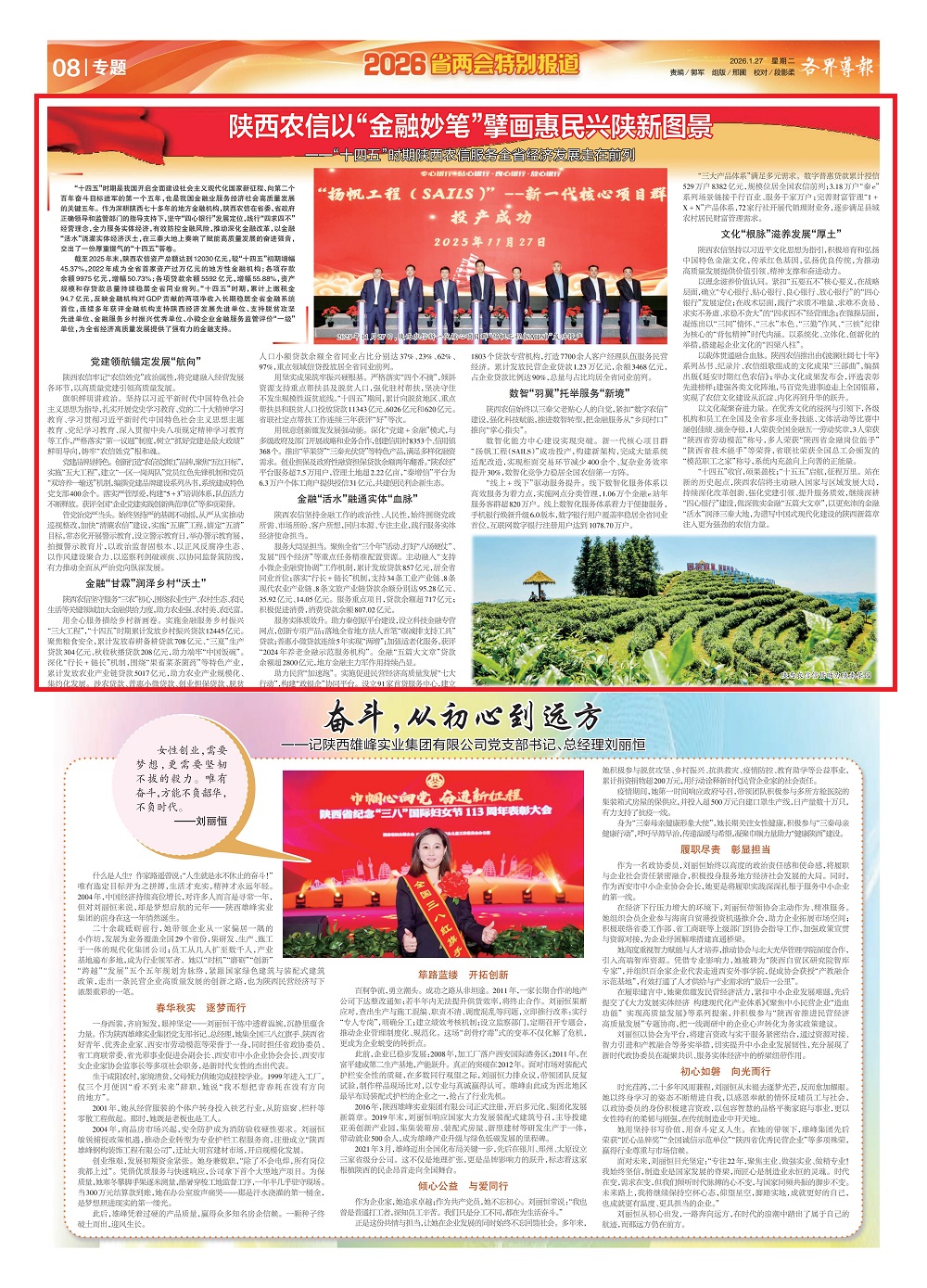 陕西农信坚持金融工作的政治性、人民性,始终围绕党政所需、市场所盼、客户所想,回归本源、专注主业,践行服务实体经济使命担当。