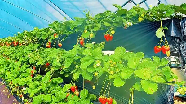 石瓮子社区西坡产业园负责人李全锟介绍道:“今年园区主要引进了‘建德白露’、‘隋珠’,以及‘金刚二号’、‘初恋的味道’等草莓新品种。其中,‘金刚二号’的红色果实甜度最高,而‘初恋的味道’在口感上最为细腻。采摘期从每年11月初开始,可持续至次年6月。”