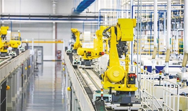 西安法士特高智新科技有限公司的生产车间内,工业机器人正在作业(资料照片)。 记者 许奥博摄