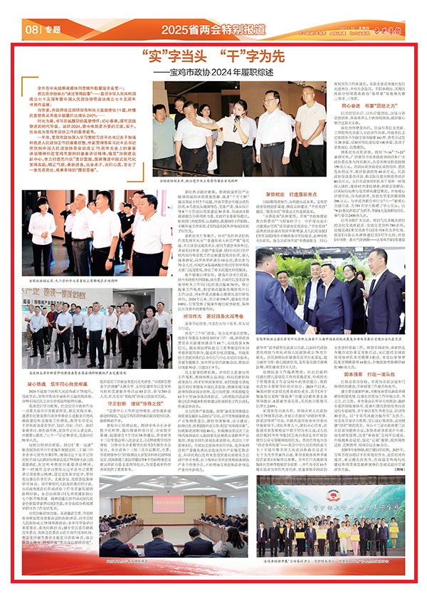 时光为笔,书写忠诚履职的真挚情怀;初心着墨,谱写团结奋进的时代华章。回眸2024,奋斗依然是不变的注脚,实干、担当成为宝鸡市政协工作的最美底色。