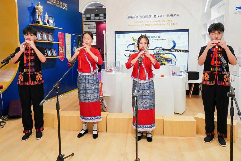 英雅盛彼德学校将国际化教育融入展会,中外师生演绎本土民歌与世界名曲,让教育成为跨文化交流的纽带,拓展消博会“精神消费”新内涵。