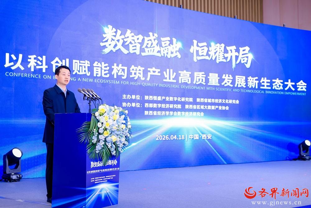 各界新闻网讯(记者 李荣)4月18日,由陕西恒盛产业数字化研究院、陕西省城市经济文化研究会主办,由西部数字经济研究院、陕西省区域大数据产业协会、陕西省经济学学会数字经济研究会协办的“数智盛融 恒耀开局——以科创赋能构筑产业高质量发展新生态大会”在西安召开。省政协委员、陕西省城市经济文化研究会会长张涛主持。