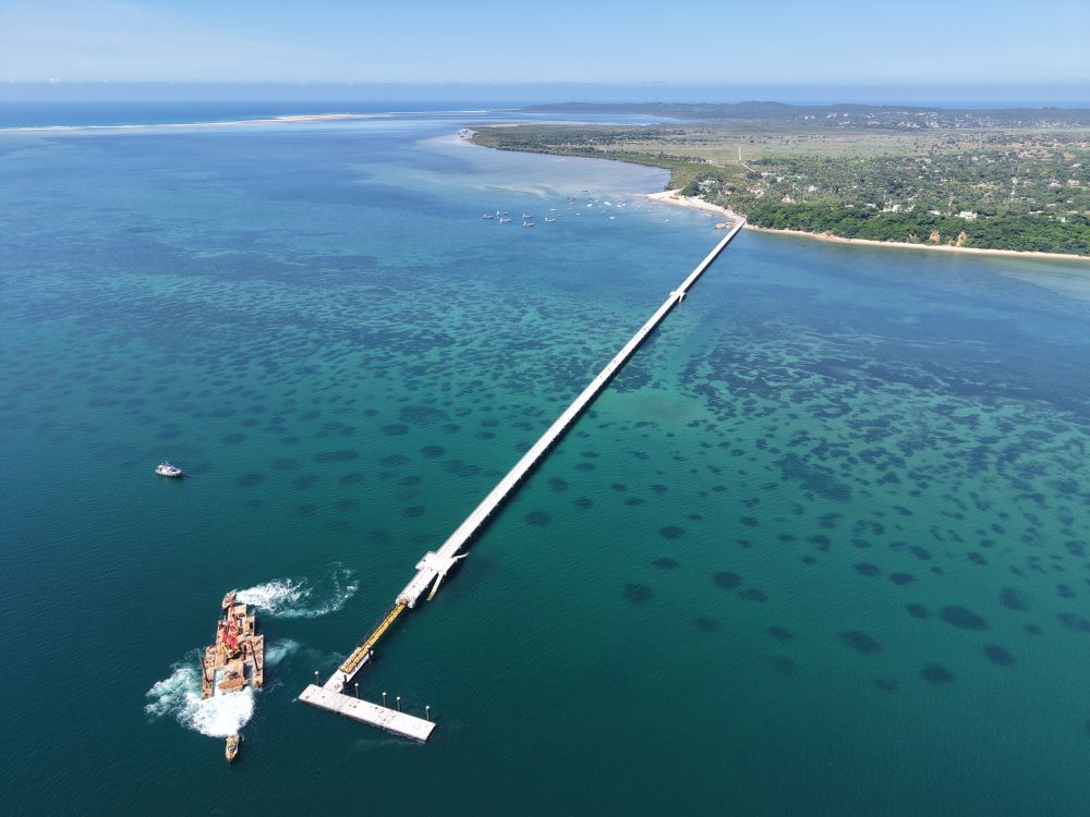 图为2月26日拍摄的由中企承建的莫桑比克伊尼亚卡岛海上栈桥通道码头。新华社发
