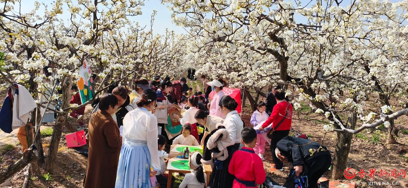 不只是孩童,来自阎良航城散曲协会、诗词协会的文人墨客们也结伴而来,赏梨花、吟诗词、创散曲,将梨园春色化作笔端诗意,让清雅花海与书香墨韵在此处完美交融。