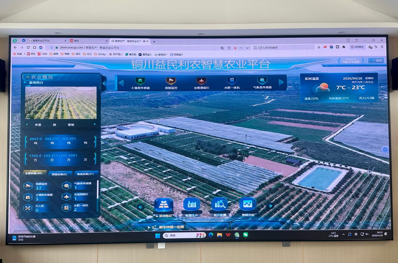 人间四月,春意正浓。记者走进铜川市王益区黄堡镇益民现代农业园区,眼前一派热火朝天而又井然有序的建设景象,连片的葡萄架下,工人们正对防雨棚进行最后一批棚膜更换;苹果种植区内,银白色的新型防雹网在阳光下铺展如毯,技术人员手持平板电脑,正忙着调试刚刚安装到位的气象监测设备。