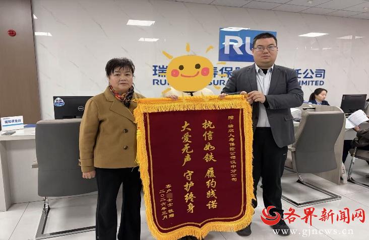 近日,客户B女士来到瑞众保险汉中中支柜面将一面印有“执信如铁,履约践诺,大爱无声,守护终身”的锦旗送至理赔服务人员手中,以此表达对公司快速、专业、暖心理赔服务的感谢之情。