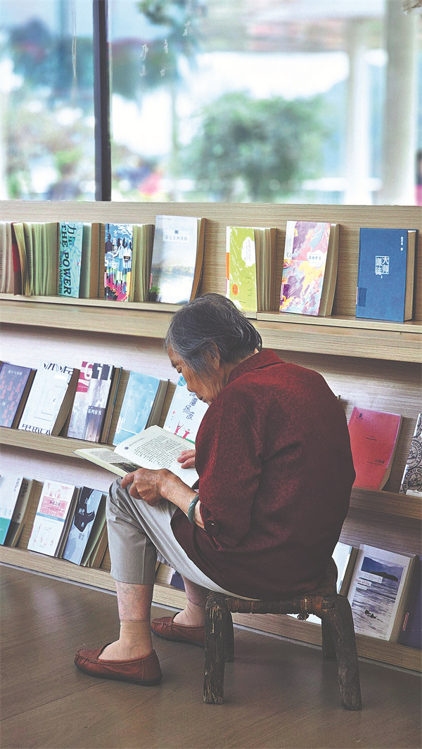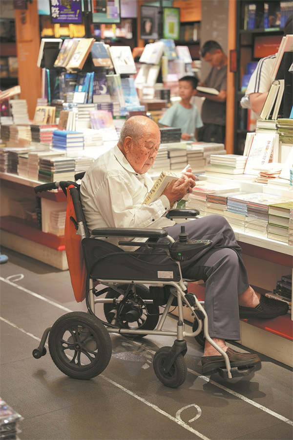 An elderly man reads in a bookstore. ZHENG YITONG/FOR CHINA DAILY