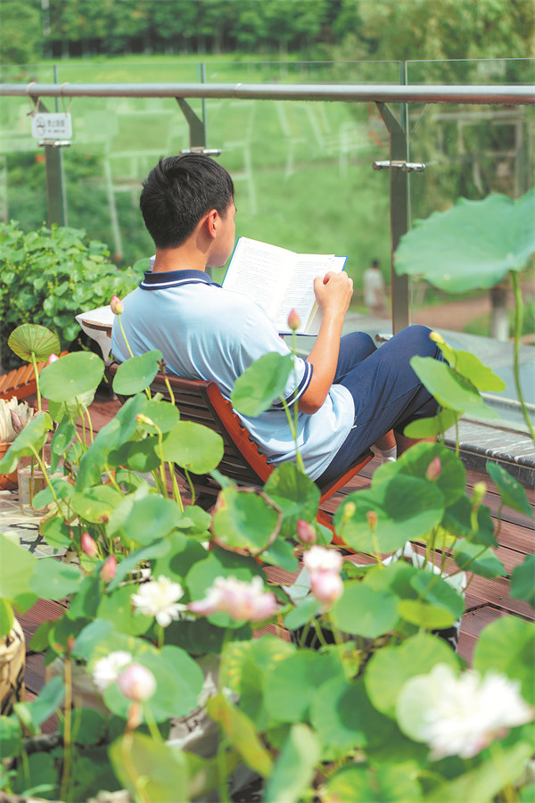 A student reads at a lakeside bookstore. WANG SHIHUA/FOR CHINA DAILY