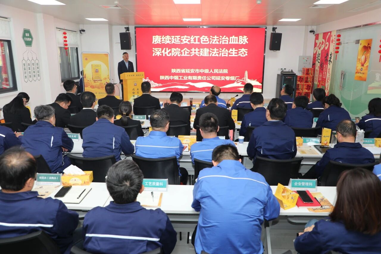 为深入贯彻落实习近平法治思想以及习近平总书记重要指示精神,推动红色基因与企业法治建设、司法实践深度融合,4月23日上午,延安市中级人民法院与陕西中烟工业有限责任公司延安卷烟厂联合举办红色法治文化共建活动。延安中院党组书记、院长刘群出席活动并讲话。