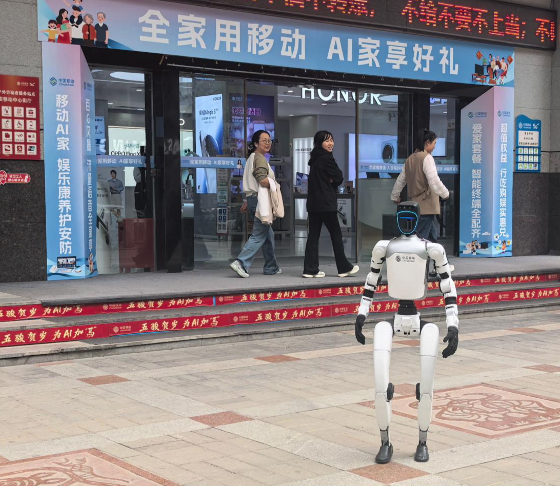 “你好呀!” 4月26日,在陕西移动延安分公司中心街营业厅外,一场别开生面的户外直播吸引了过往市民的目光。营业厅的 “数字新员工”—— 人形智能机器人走出室内,与市民热情打招呼、互动握手,直播间镜头实时记录下这一幕,线上线下掀起热烈反响。