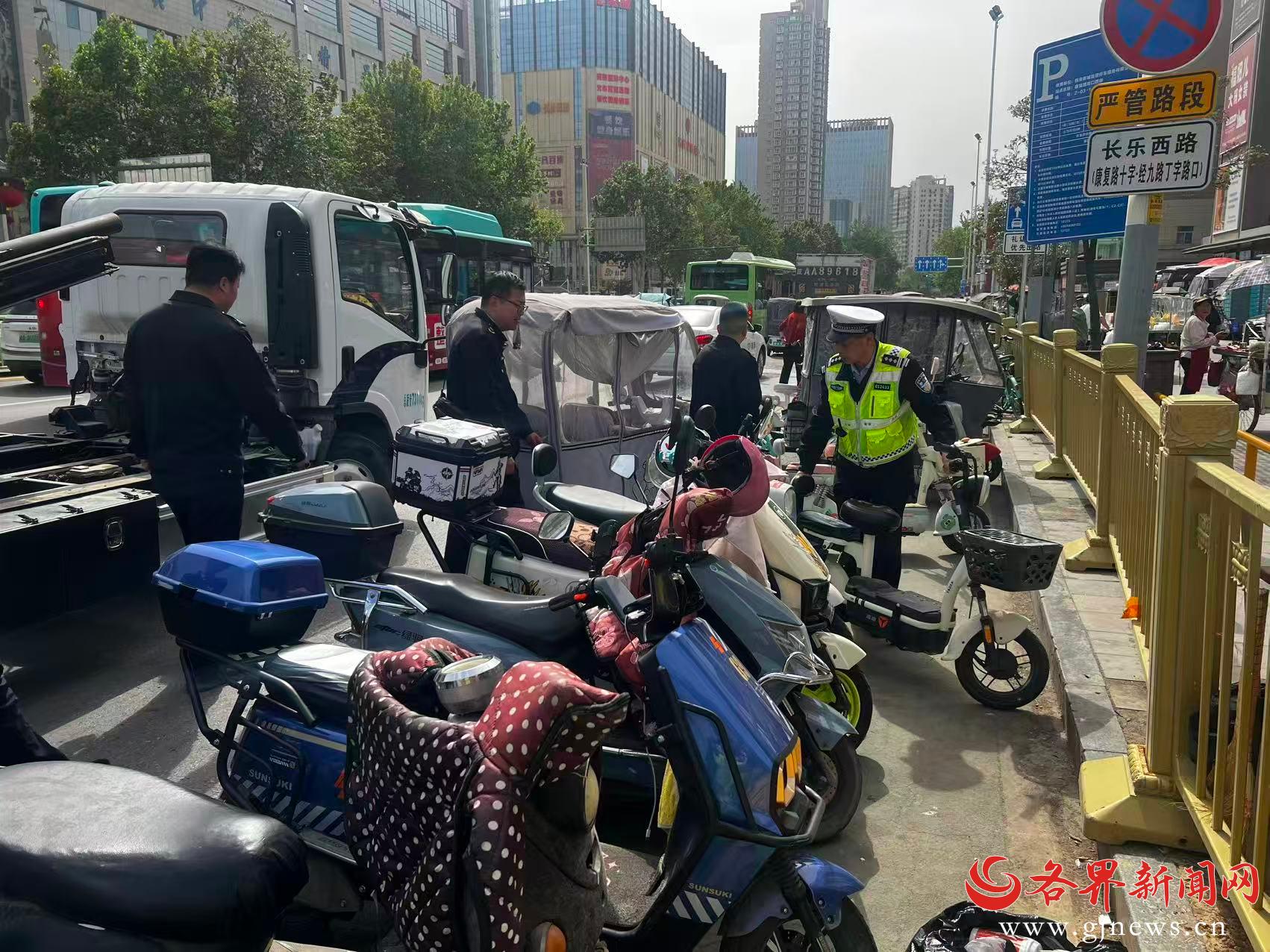 各界新闻网讯(记者 李荣 通讯员 靳蕾)4月24日,西安公安交管新城大队执勤三中队联合长乐西路街道办、新城区城管中队,在康复路南口开展非机动车违停专项整治,解决群众出行拥堵问题,改善该路段通行环境,获得周边群众认可。