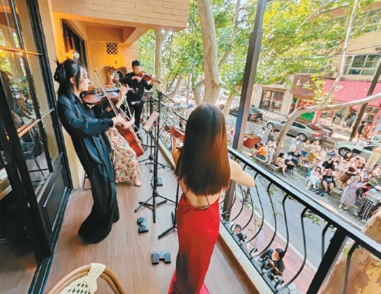 由此,从每年一届的大雁塔下的户外公演,到街巷里坊内的民间自乐班;从城墙门洞里拥趸众多的民谣演出,到易俗社文化街区中每日铿锵的大秦之腔,再到City walk时抬眼可见的“阳台音乐会”……