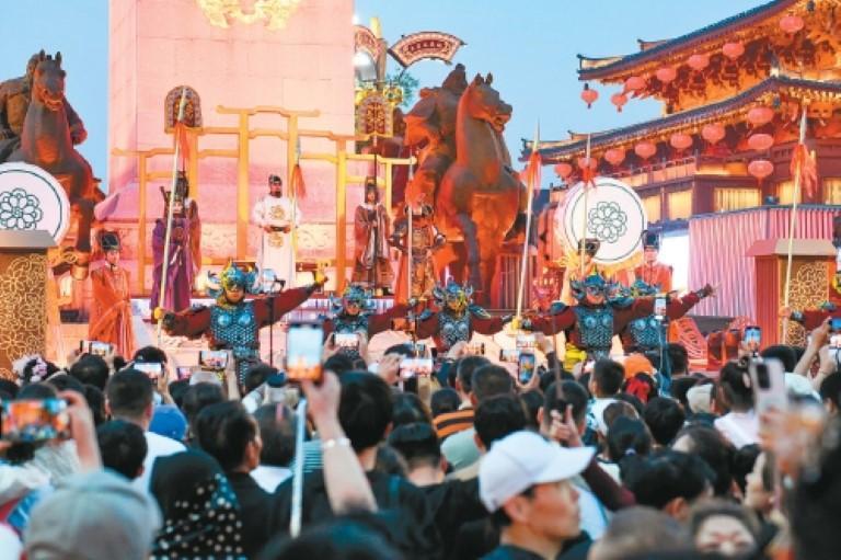 于是,从《长恨歌》的水幕光影,到《赳赳大秦》的史诗幻境;从全球首家“无界XR影院”里的丝路传奇,到街头转角处“塔宝”文创的会心一笑——在数不清的体验中,科技与创意让古老的中国故事讲出新的味道。