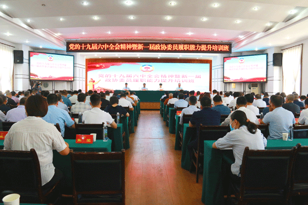 6月21日,麟游县政协举办学习贯彻党的十九届六中全会精神暨新一届委员履职能力提升培训班。县政协主席闫秉云作动员讲话。县政协副主席冯广平、海建军、赵晓霞,住麟市政协委员、第十届县政协委员、县政协委员工作室负责人和县政协机关干部参加培训