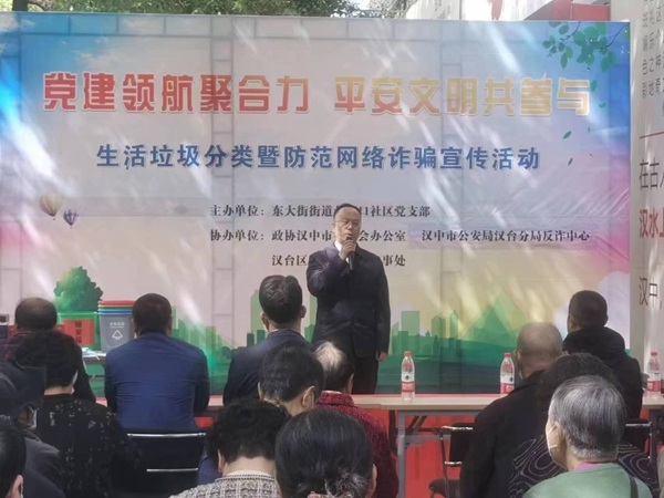 4月11日,汉中市政协副秘书长陈刚带领政协机关全体干部职工联合汉台区东大街办事处北街口社区党支部开展了“党建领航聚合力,平安文明共参与”国家安全教育和防范网络诈骗宣传活动。