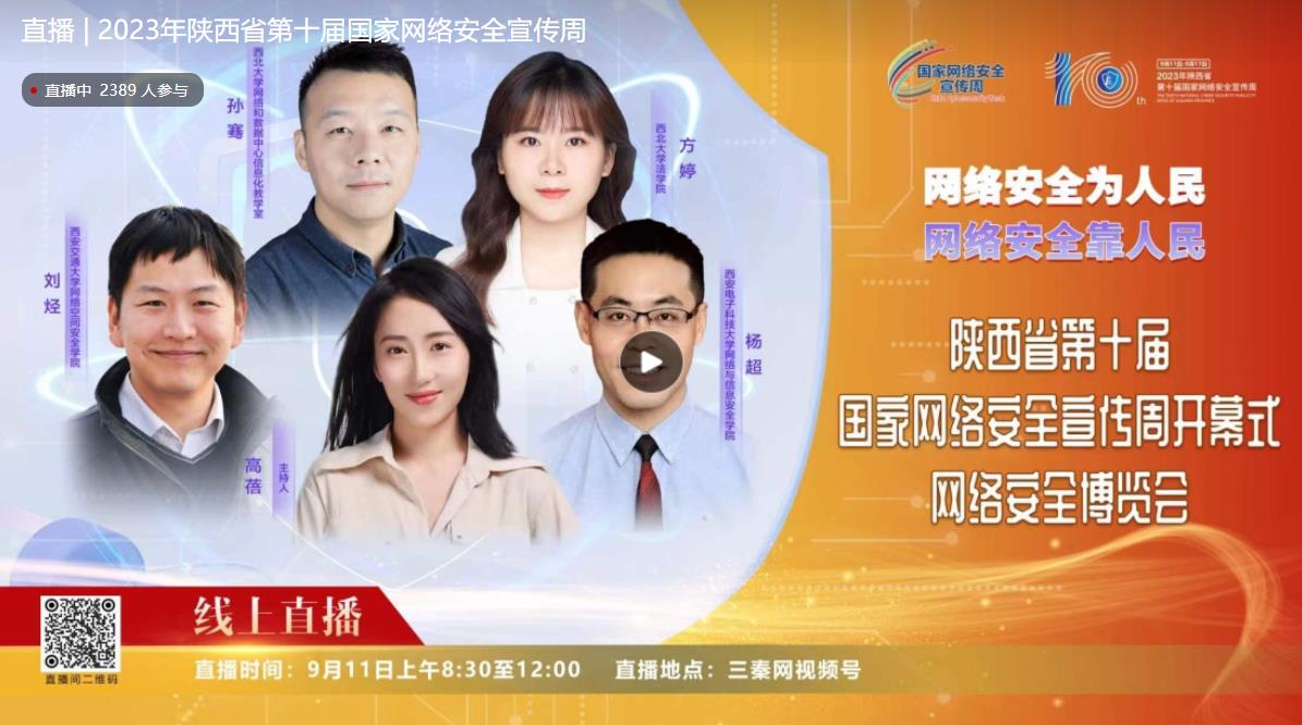 直播 | 2023年陕西省第十届国家网络安全宣传周