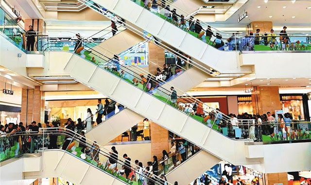 清明假期,陕西各地消费市场热度攀升。4月4日,在西安赛格国际购物中心,顾客在休闲购物。