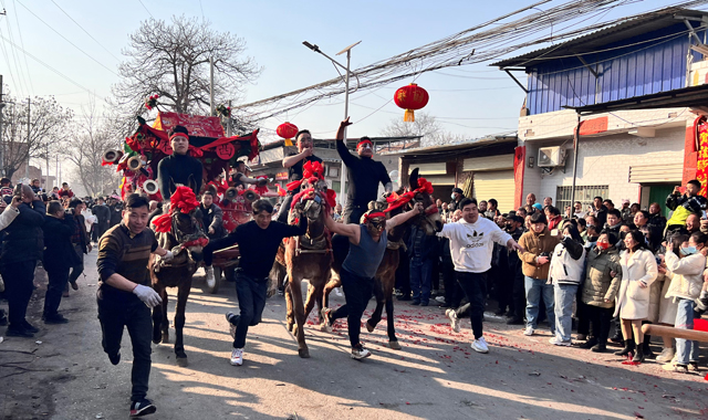 2月4日,大荔县羌白镇阿寿村举行社火表演,当地群众自发表演花苫鼓、跑骡车、跑竹马等节目,用热闹喜庆的方式表达着对新一年美好生活的浓浓期盼。