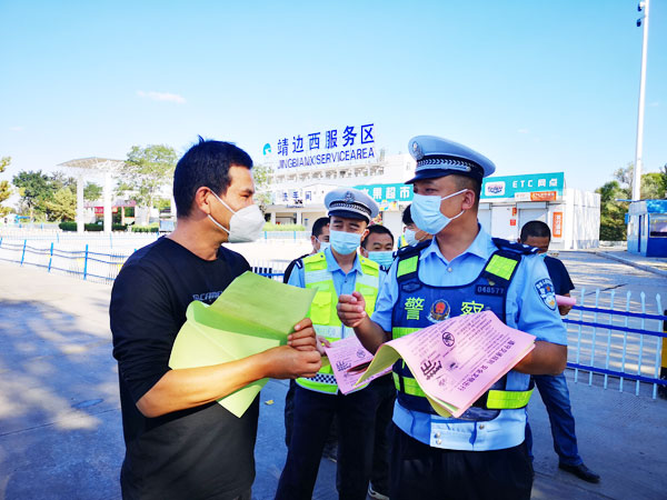 为进一步做好中秋节小长假期间辖区高速公路交通安全管理工作,及时消除安全隐患,在中秋节假期期间,榆林高交定靖大队寨山中队走进辖区青银高速靖边西服务区,围绕节日出行、高速公路行车注意事项等大力开展宣传提示,努力营造人人重视交通安全、人人
