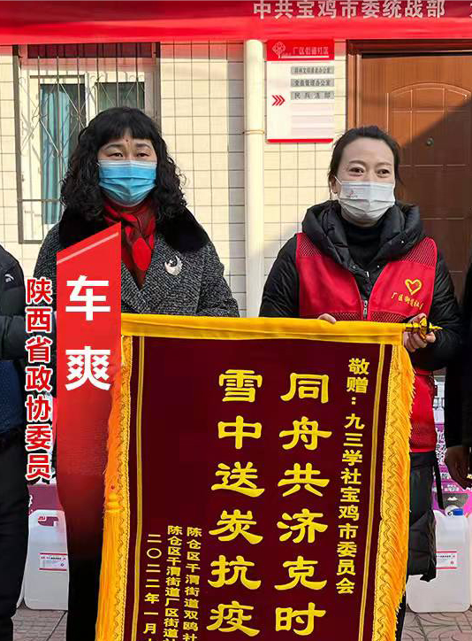 疫情面前显大义。省政协委员、九三学社宝鸡市委会主委车爽第一时间响应号召,带领九三学社宝鸡基层组织成员深入防疫一线开展抗疫工作,组织市委会开展抗疫物资募捐活动。截至目前,共筹集到帐篷、课桌椅、口罩、消毒液、防护服、手套和食品等防疫物